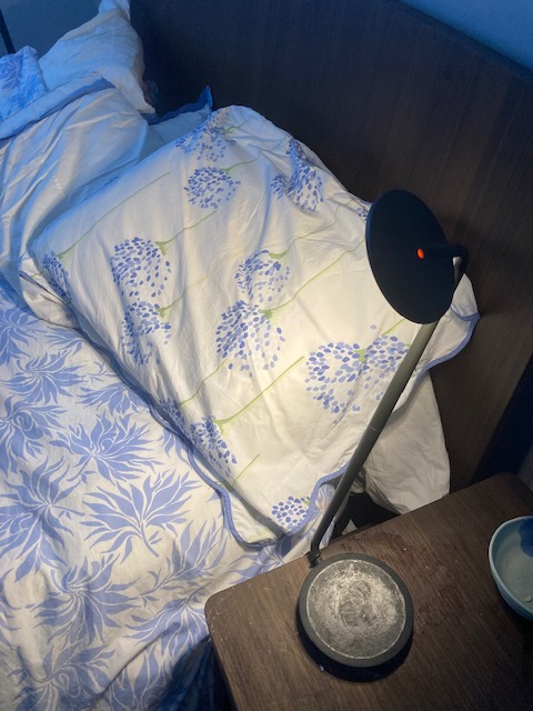 I bought the lamp when I first moved into my empty-nester apartment, and thought it the coolest thing. To turn it on, you swiped your hand over a red dot on the top of its stem, and voila! It lit up. It was also in possession of a USB port, so, with its final destination my night table, adjacent to the bed where I’d be reading and watching TV, I’d be able to effortlessly charge my phone all night long. The lamp was the final touch in the creation of my haven.