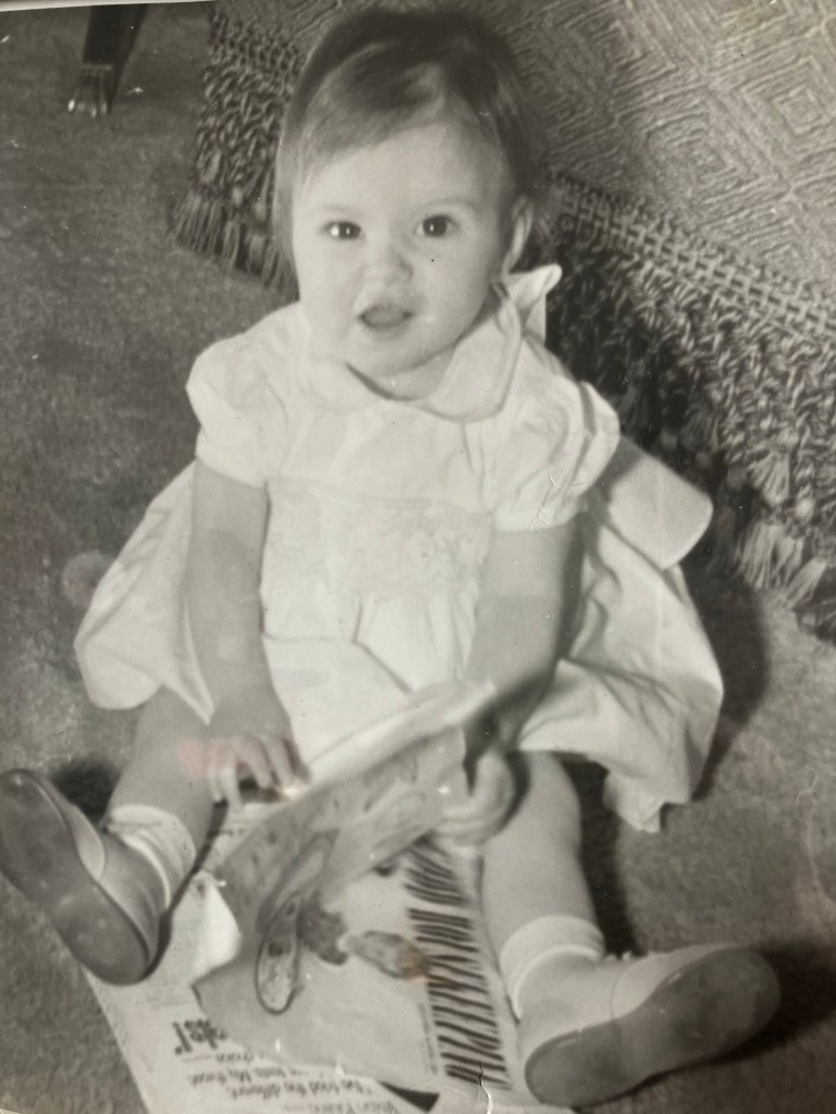 I guess I wanted to read the magazine myself. If you’re wondering about the crutch-like things attached to my feet, I called them my “night-night shoes” for correcting bow-leggedness or pigeon toes, I forget which.
